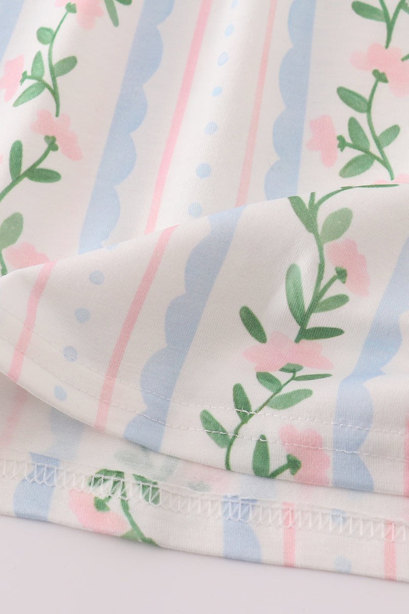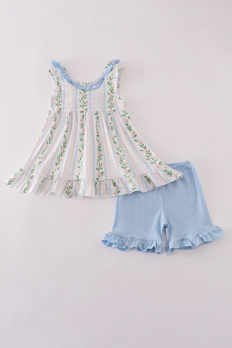 Blue floral print ruffle shorts set