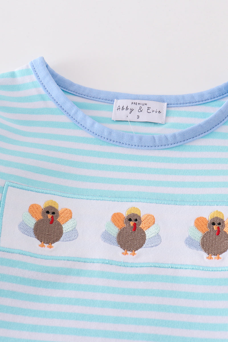Premium Green stripe turkey embroidery girl...