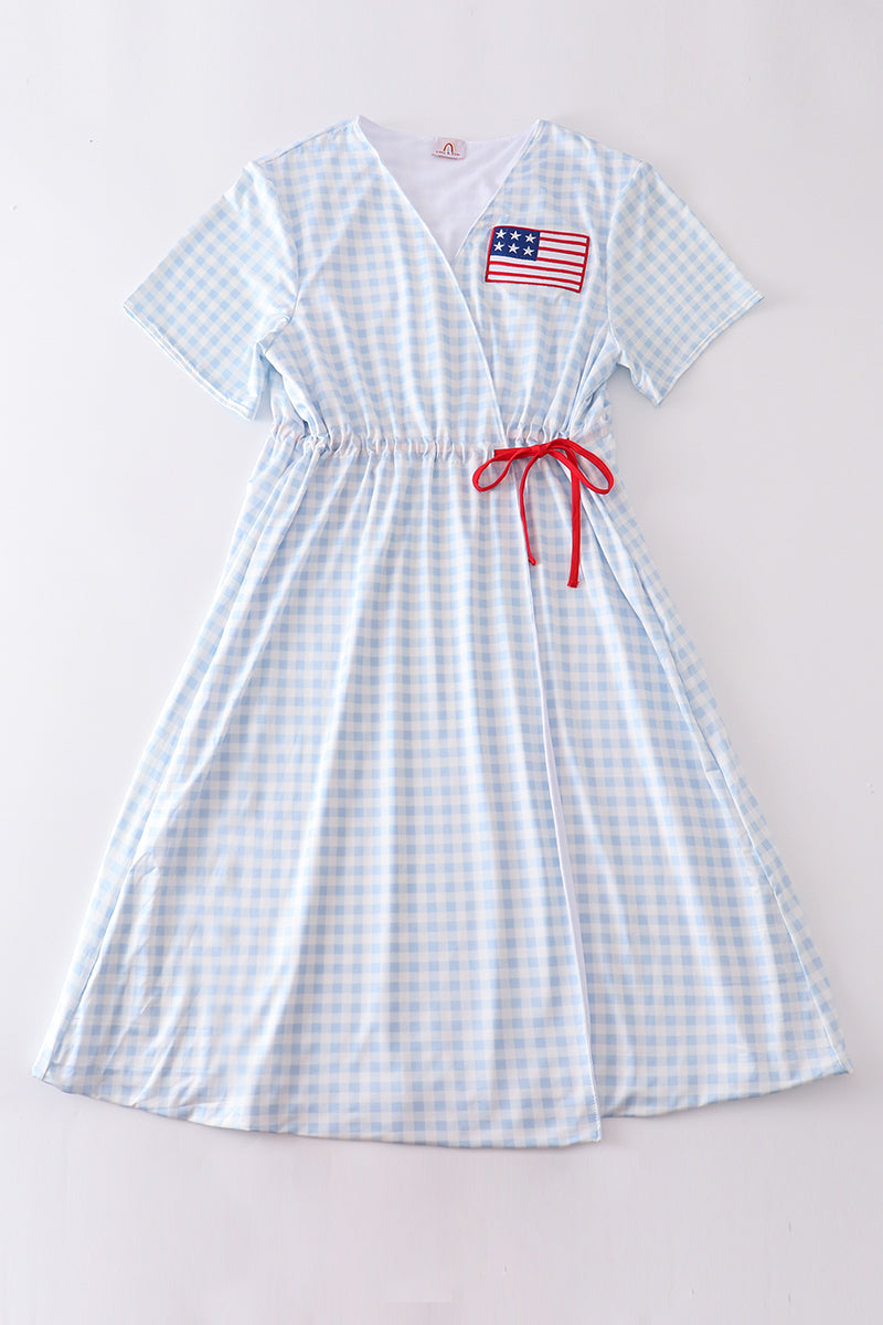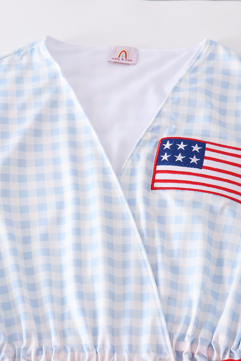 Patriotic plaid flag embroidery woman bikini...