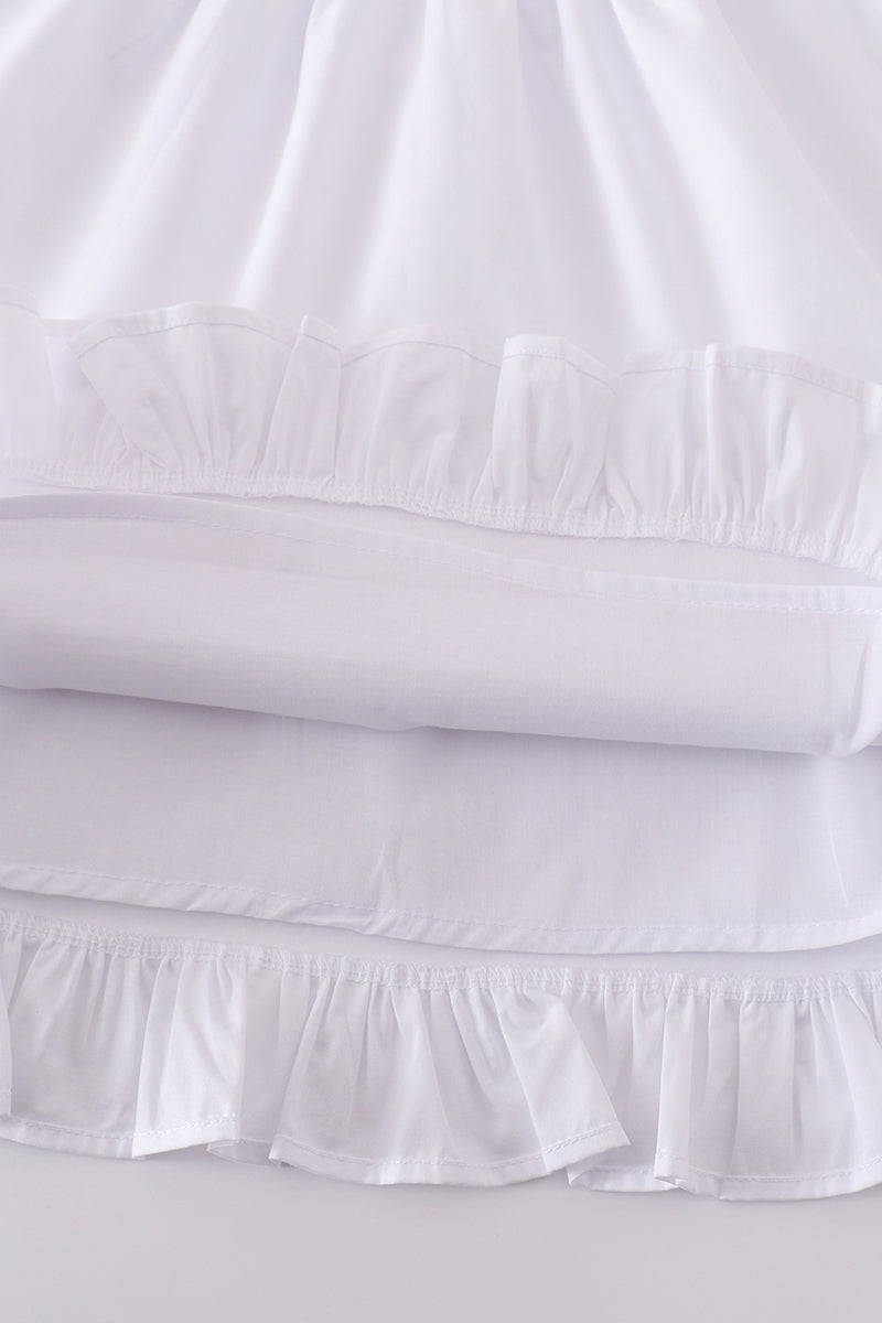 Premium white floral embroidery ruffle dress