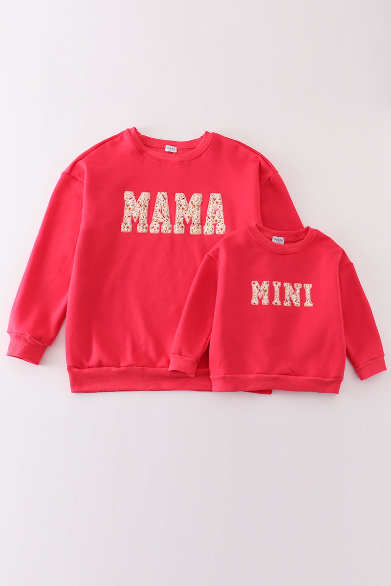 Red MAMA&MINI applique fleece mom&me sweatshirt